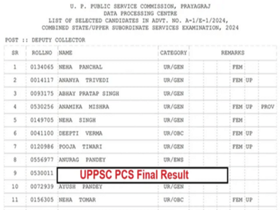 The final results for the Uttar Pradesh Combined State/Upper Subordinate Services Examination 2024 have been released. The results have been published online in PDF format on the Commission's official website, uppsc.up.nic.in. According to the final results, a total of 932 candidates have been declared successful against 947 vacancies. Selected candidates are now required to appear for document verification on the scheduled dates, following which they will be appointed to the vacant posts.